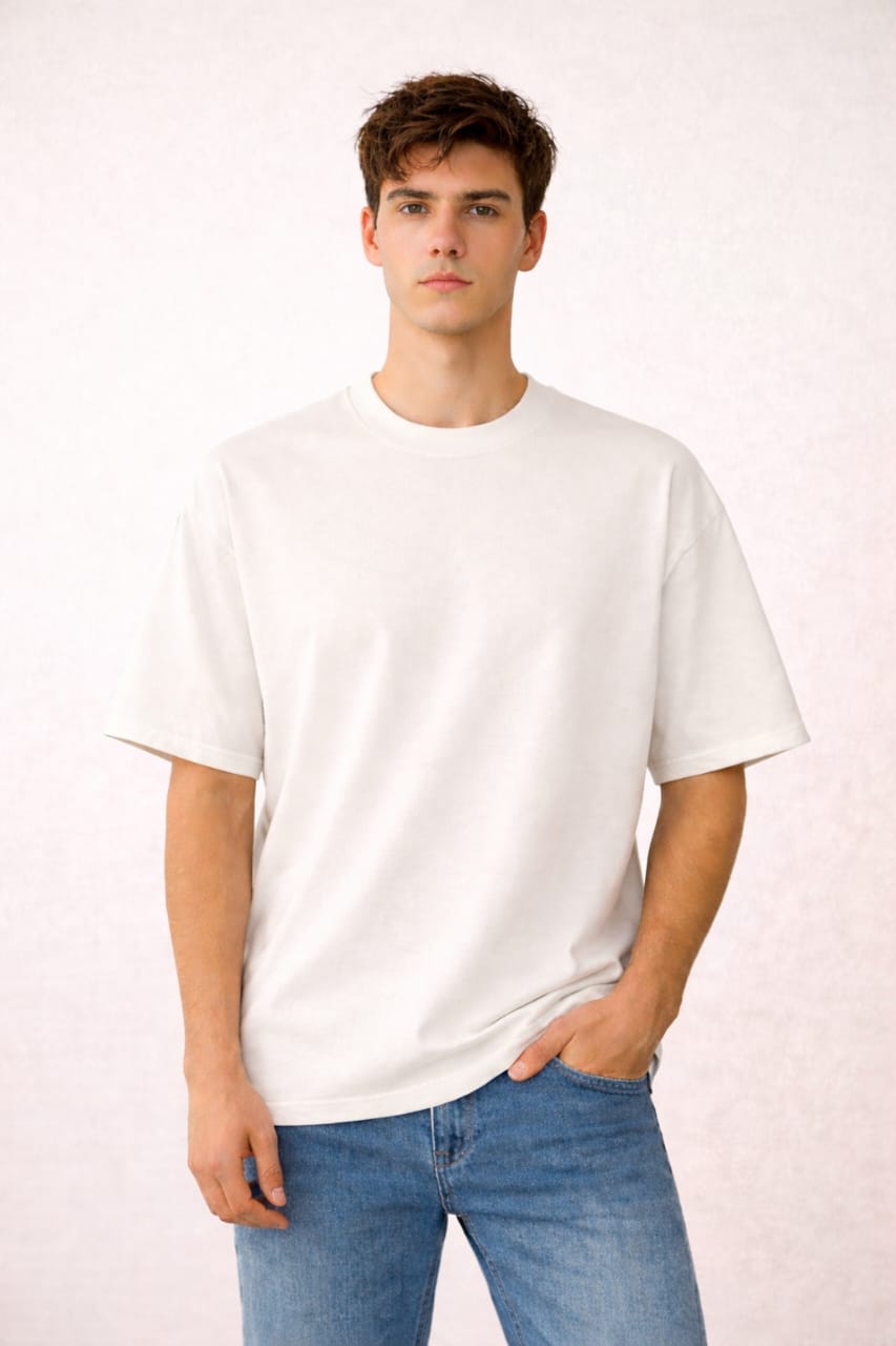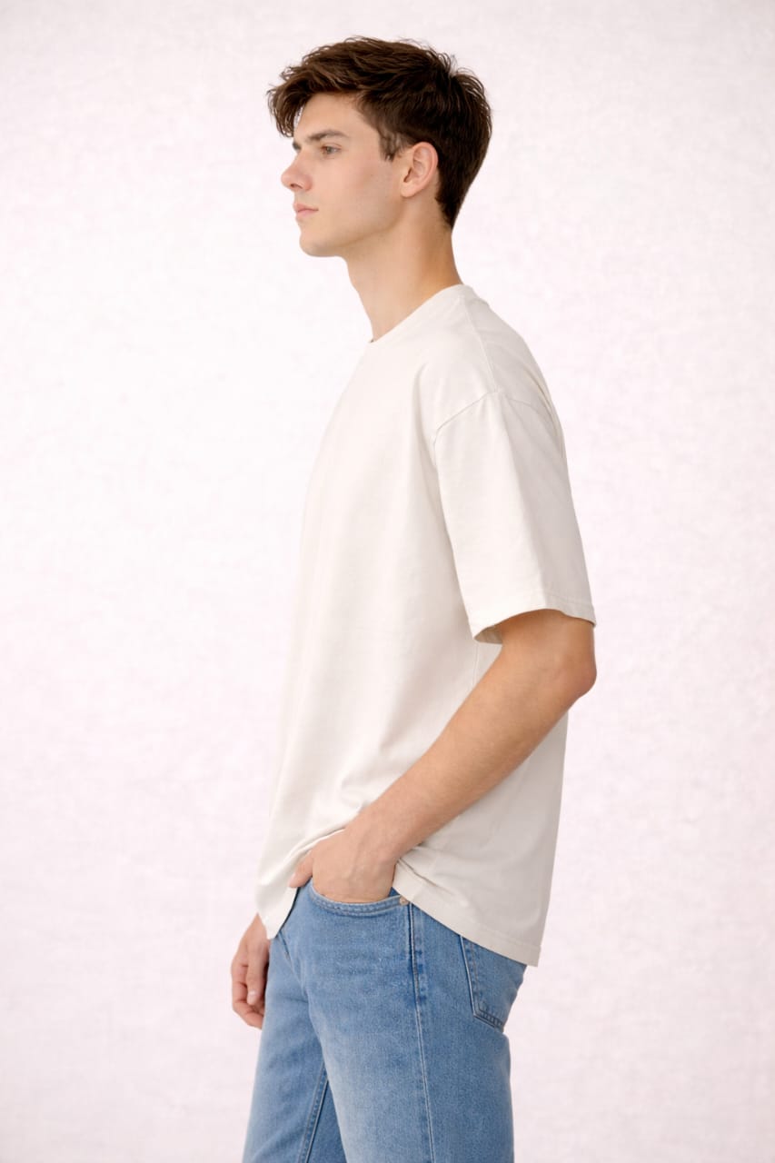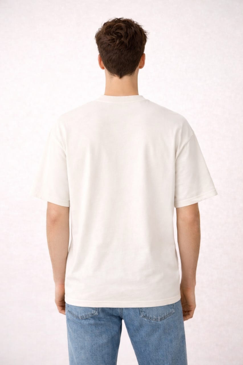 The off-white shade adds a subtle, elegant tone that looks richer than plain white and pairs perfectly with both light and dark bottoms. Designed in a relaxed oversized fit, it’s ideal for streetwear styling, daily wear, travel, and casual outings.