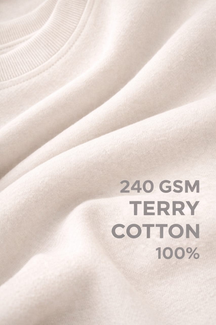 Upgrade your wardrobe with the Krumika Premium Off-White Oversized T-Shirt, crafted for a clean, classy, and modern look. Made using 240 GSM 100% Terry Cotton, this T-shirt delivers a thick, soft, and breathable feel with a premium fall and superior comfort.
